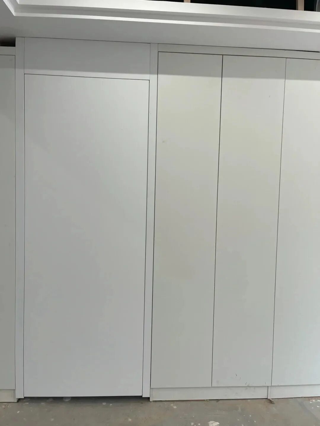 但又因预算问题,隐形门与墙体材质选了不同厂家的,结果门与墙有明显的色差,感觉还不如装普通门了。