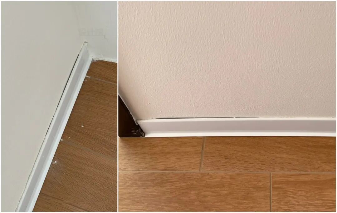 然而这种超薄的踢脚线,对墙面的平整度要求极高,墙面不平整的话,装上后的缝隙大到可以藏下几百块的私房钱!
